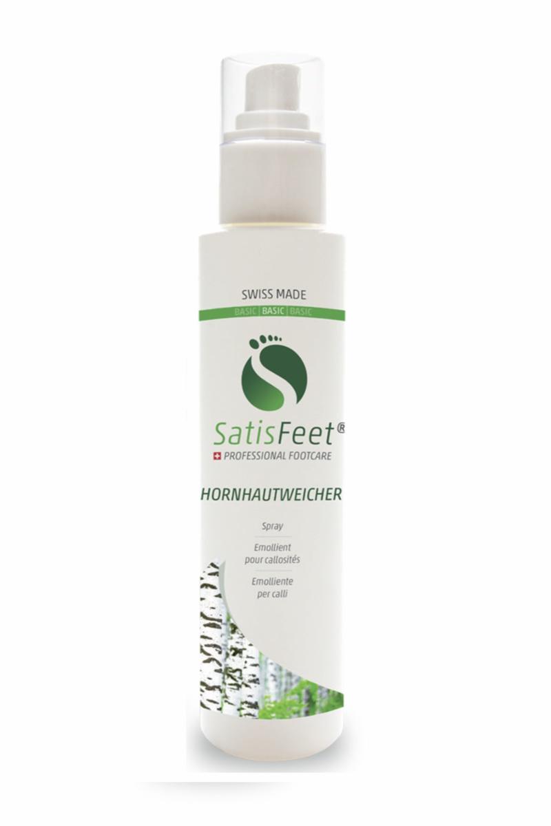 Rist godt før bruk. Spray på de berørte områdene og la virke i minst 4 minutter. Huden begynner å eksfoliere. Om nødvendig, forsiktig fjern hornhinnen med en skrape. Skyll deretter føttene godt med vann, tørk dem og påfør SatisFeet pleieprodukter.